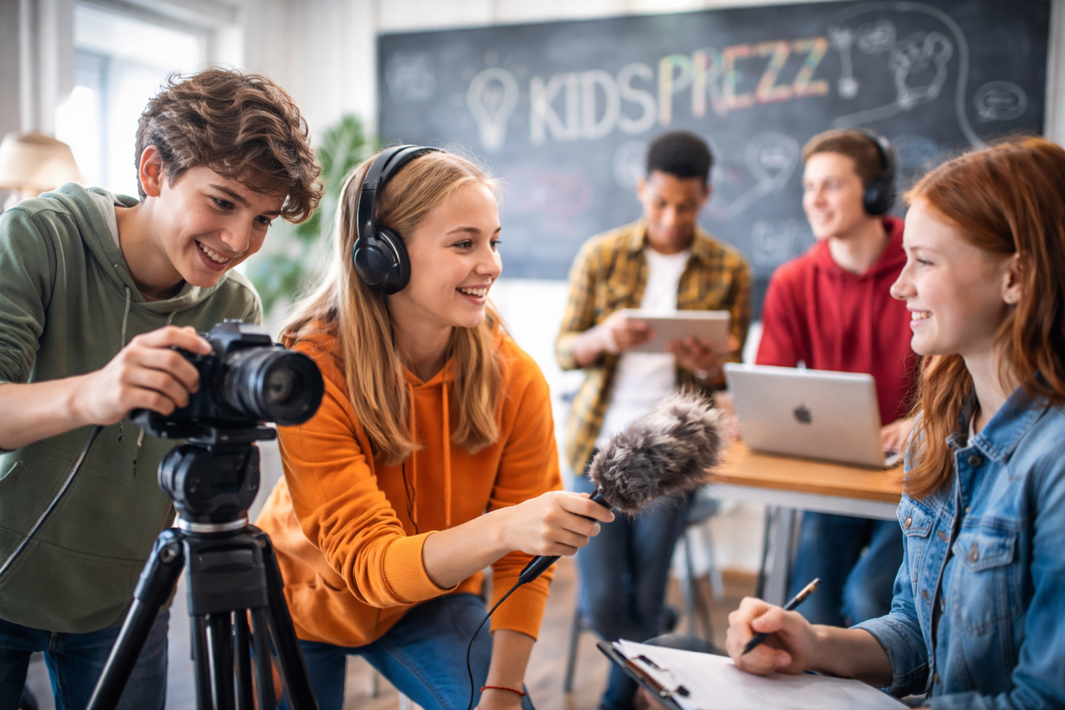 KidsPrezz verbindet Medienkompetenz mit praktischer Medienproduktion. Unser Programm richtet sich an Jugendliche zwischen 14 und 16 Jahren und vermittelt zentrale Zukunftskompetenzen in einer digitalen Medienwelt.